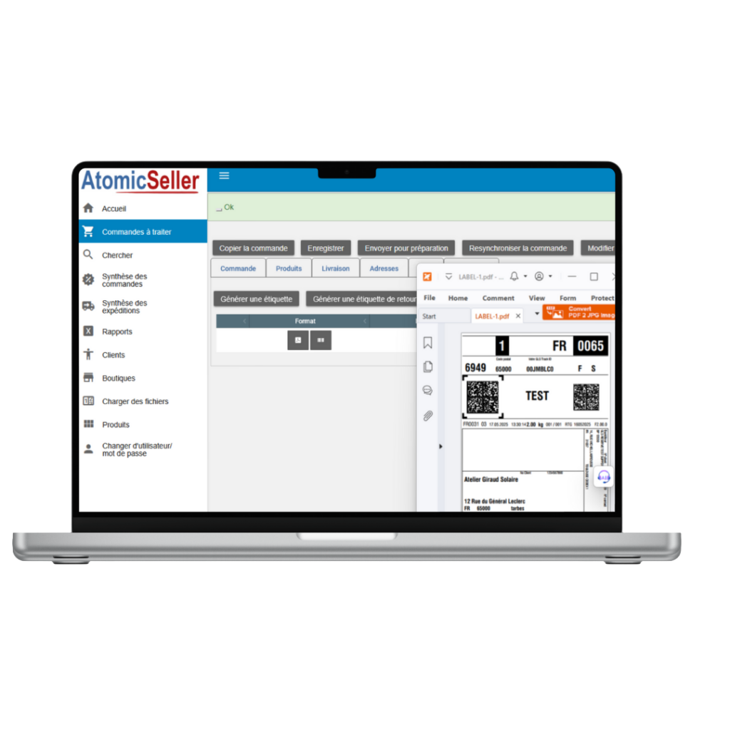 AtomicSeller vous permet de télécharger automatiquement les commandes depuis les sites de vente, générer vos étiquettes de transport, suivre les colis et gérer les retours.